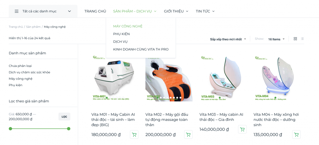 • Người dùng có thể xem danh sách sản phẩm nổi bật được giới thiệu tại Trang chủ tại website https://vitath.pro hoặc chọn xem danh sách sản phẩm được phân loại tại thanh điều hướng “SẢN PHẨM – DỊCH VỤ” tại đầu trang.